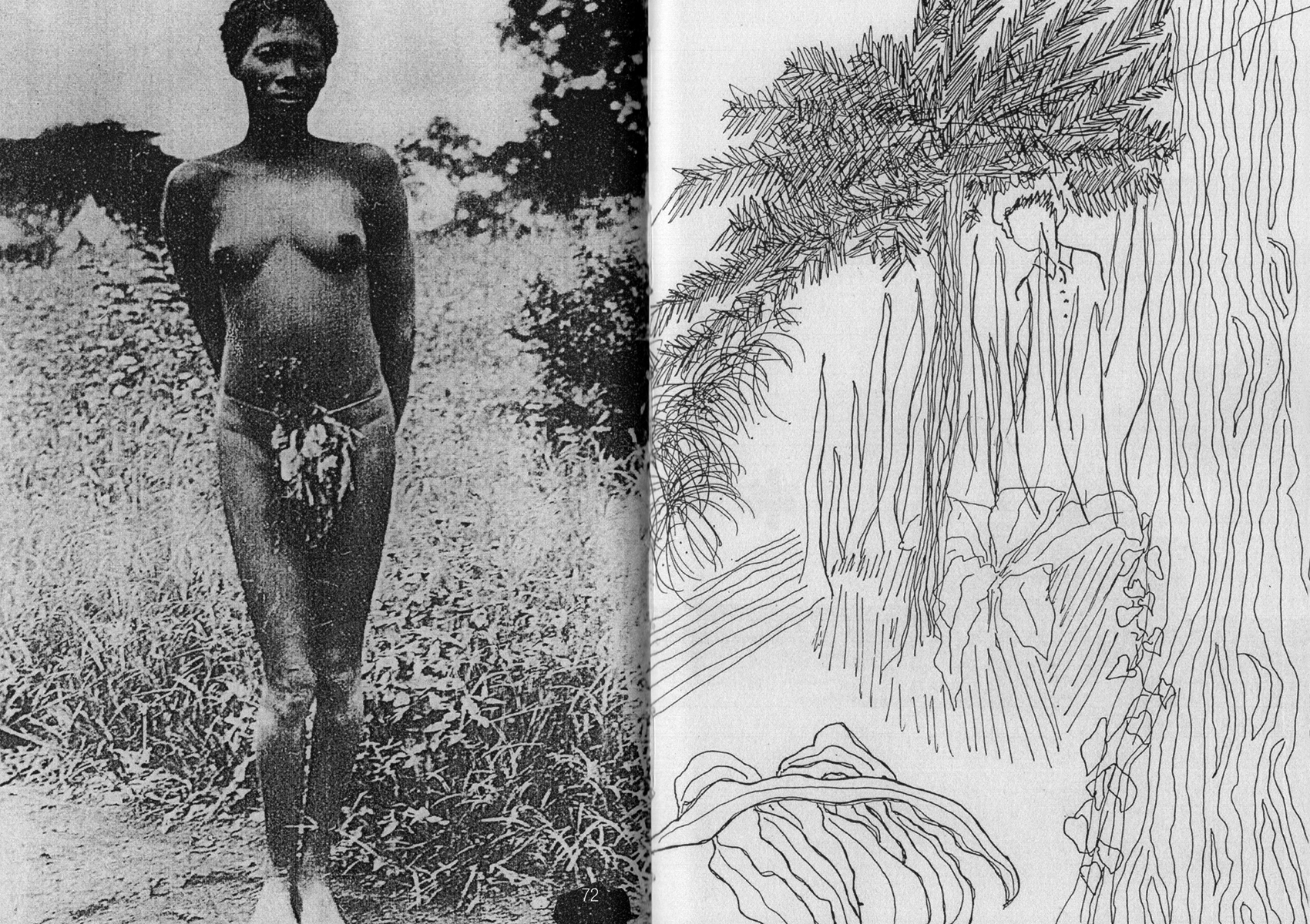“Lost Bird” is a book about abandonment. Photos thrown in the trash, postcards from baskets at flea markets, pages from books, mostly encyclopedias piled up in antique shops and texts from torn pages.